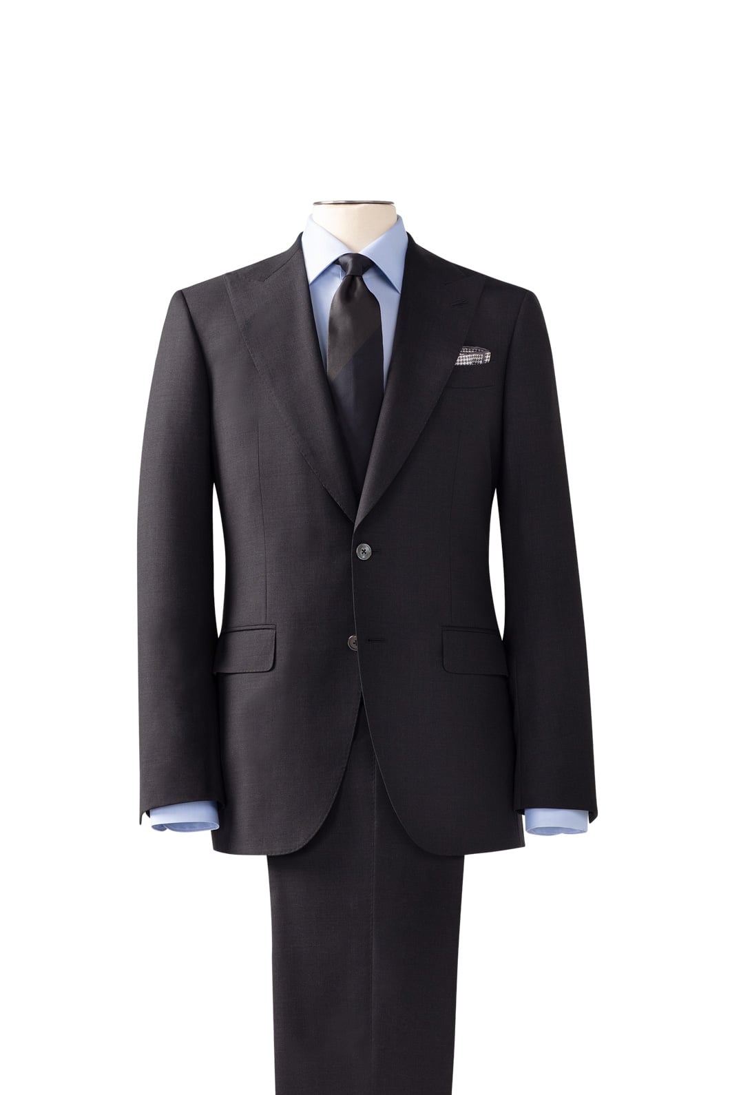 The quintessential business suit. Tailored from Super 150s Merino wool sourced from the finest Australian fleeces, this charcoal suit drapes with authority and ages with grace.